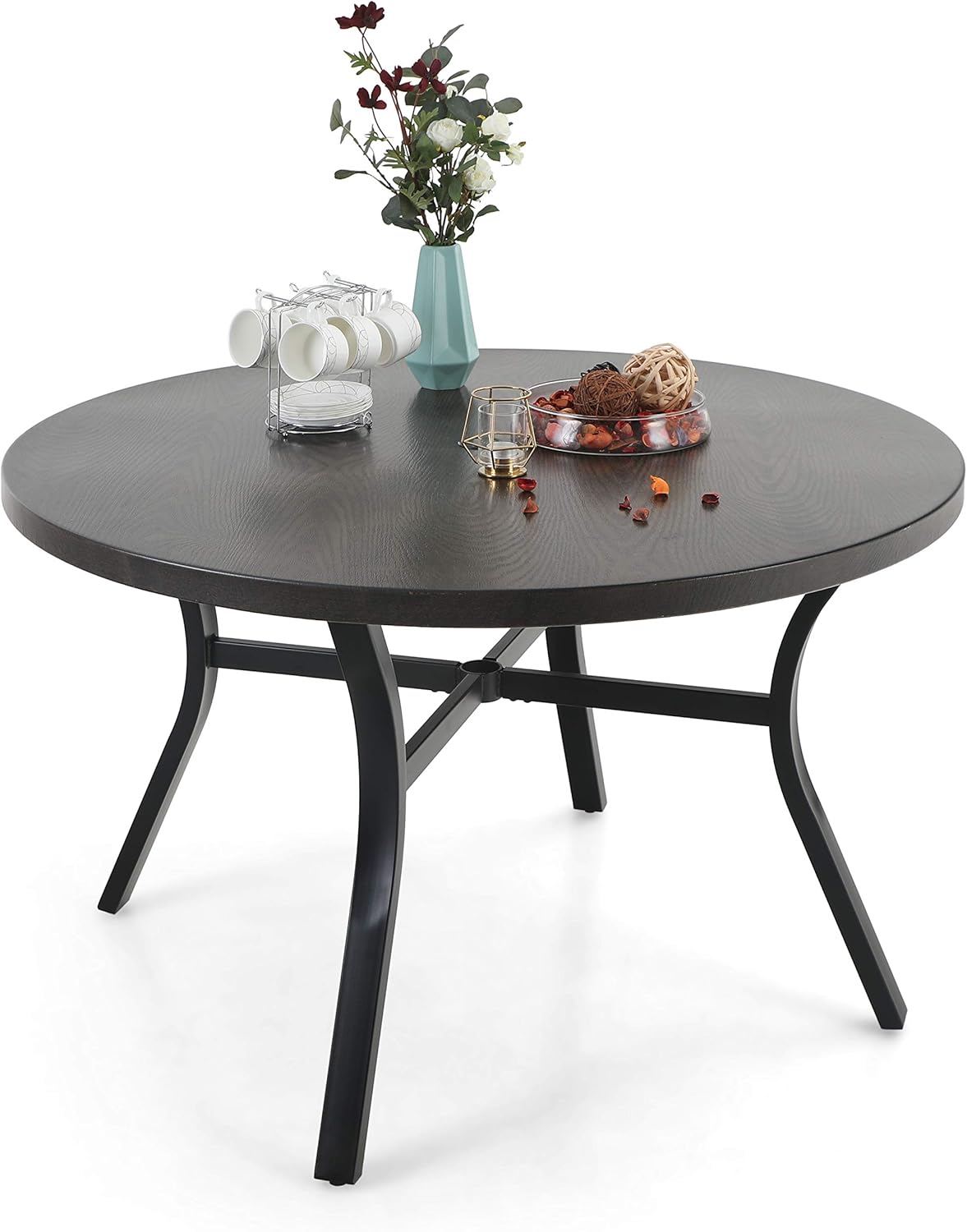 Never use oiled or treated cloths on lacquered finishes. Current price $195.98 $ 195. Black metal 3 piece dining set with haze oak finish wood top (53 in. White wood top metal white base round dining table 4 sizes reflecting a seamless organic shape an. Festival depot dining side coffee outdoor patio bistro metal sturdy steel legs wrought iron round table with 1.51''umbrella hole grid slatted steel desktop design φ42.1''28.3''(h),black 4.2 out of 5 stars 6